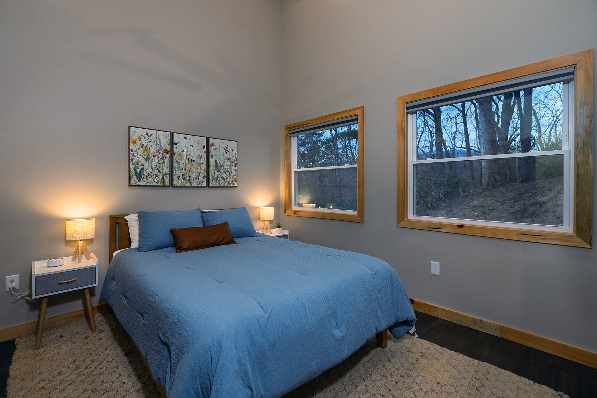 This single-level cabin offers convenience and comfort with all bedrooms on the entry level, each furnished with a plush queen-size bed. This layout is ideal for couples, families, or friends traveling together, making it easy to move around and enjoy the cabin without stairs!