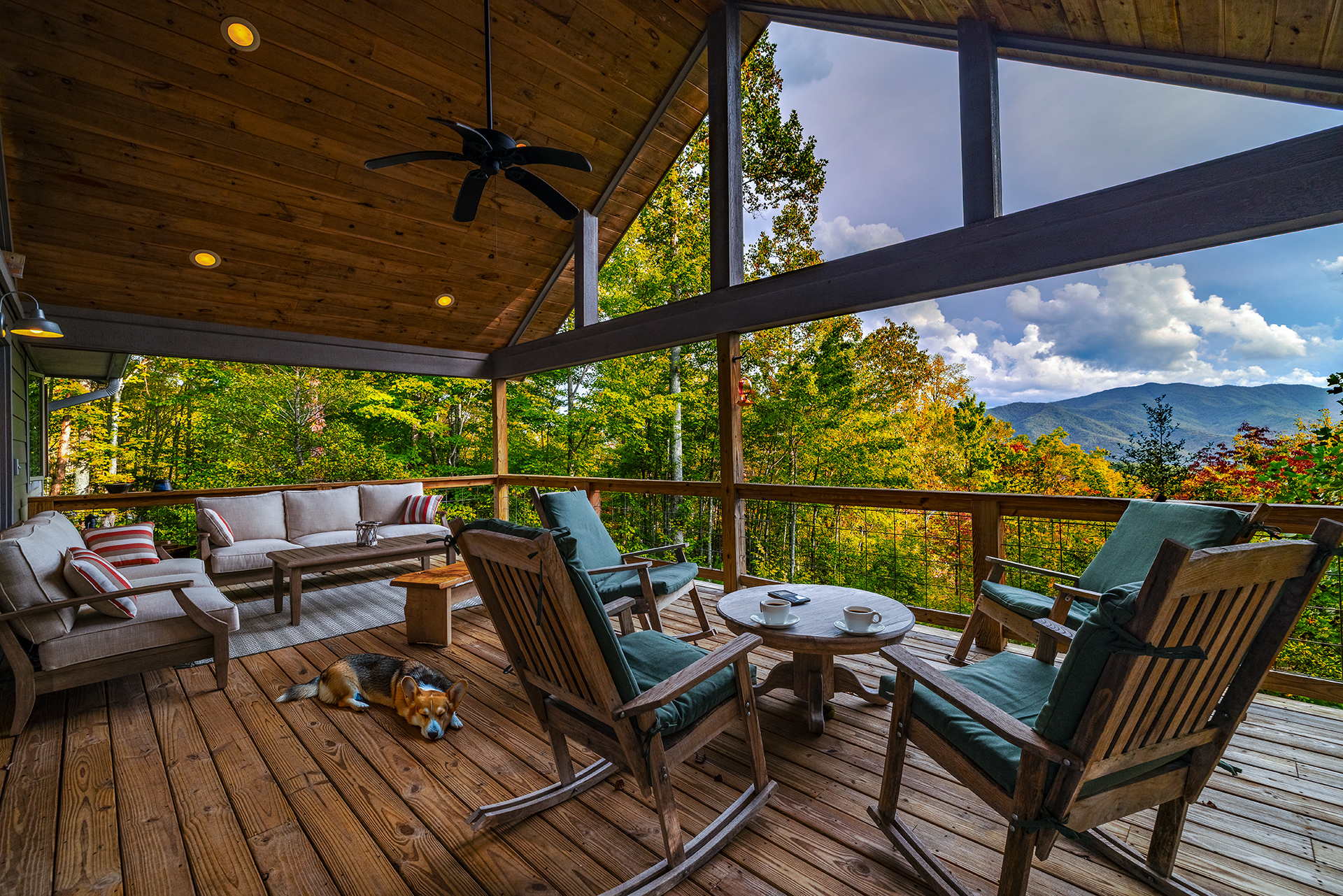 • The large covered back deck is a great place to spend the evening watching the sun fall behind the mountains.