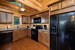 When you enter the cabin the first thing you will notice is the open feeling and the amount of natural light that fills the cabin. The kitchen is on your right and features granite counter tops, breakfast bar and all new, modern stainless steel appliances including dishwasher, microwave and coffee maker. All dishes, utensils and cooking tools are provided. Past the kitchen is a full bath and laundry area with stackable washer and dryer. The great room on the left features a large living and dining area with a table suitable for seating 10. The modern-rustic decor features leather sofa and chairs, hardwood floors and a stone fireplace. There is a satellite dish and home theater system complete with CD/DVD player. The master bedroom features a king size bed, [access to the wrap-around porch. The bedroom opens into the living room allowing it to fill with the natural light coming in from the floor to ceiling windows. There are sliding doors which can be closed to section off the bedroom from the main living area..
