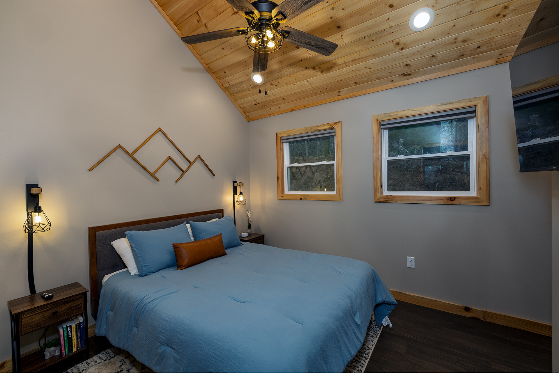 This single-level cabin offers convenience and comfort with all bedrooms on the entry level, each furnished with a plush queen-size bed. This layout is ideal for couples, families, or friends traveling together, making it easy to move around and enjoy the cabin without stairs!