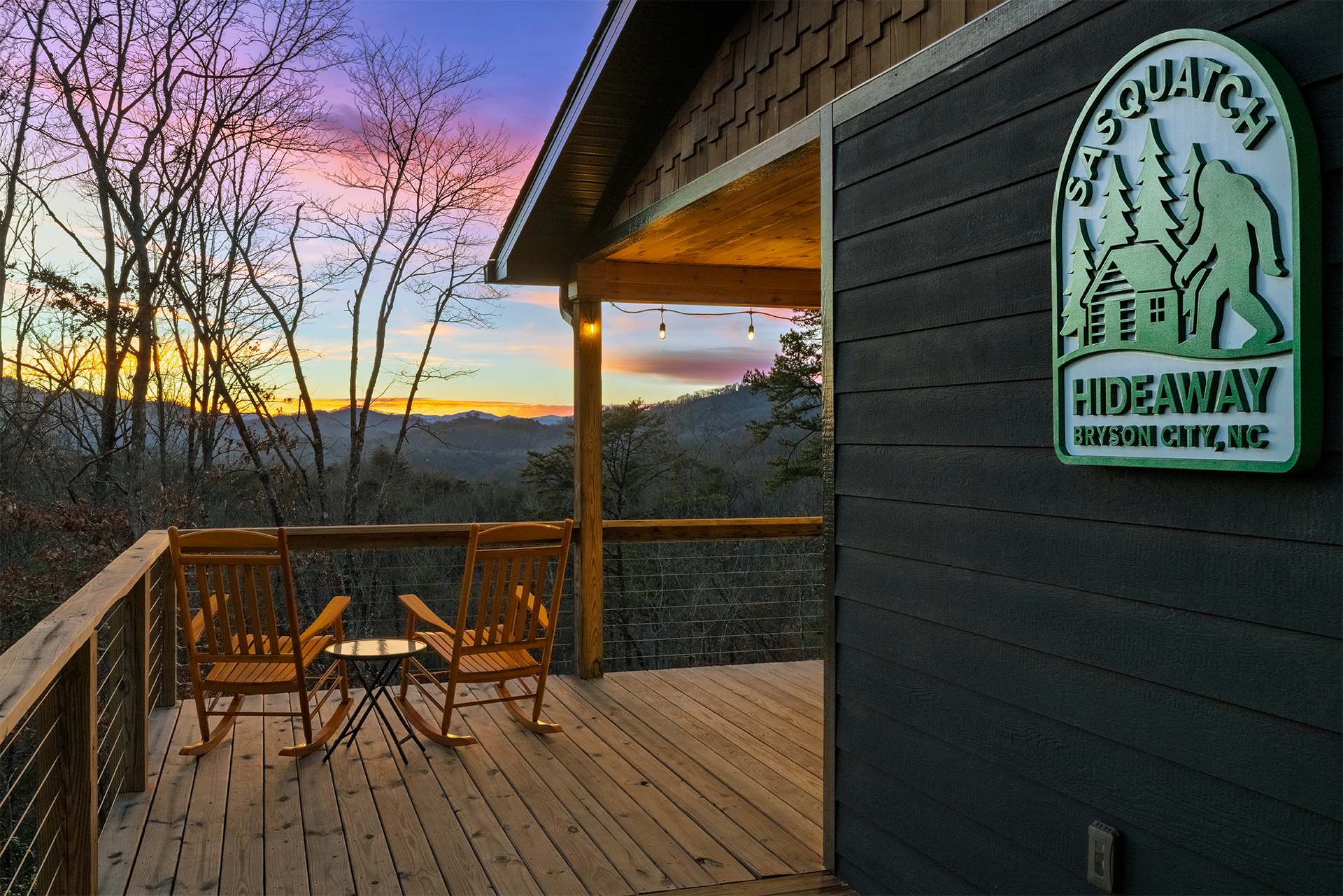 Welcome to Sasquatch Hideaway! Perched high above Bryson City with sweeping, uninterrupted views of the Great Smoky Mountains. This modern mountain retreat offers the perfect blend of peaceful seclusion and easy access to some of the area’s most beloved attractions. You’ll love being less than 10 minutes from the Great Smoky Mountains Railroad Depot, where scenic excursions run year-round. The Deep Creek entrance to the GSMNP is just an 8-minute drive away, offering beautiful hiking trails, waterfalls, and seasonal tubing. Outdoor lovers will also appreciate the cabin’s close proximity to both the Nantahala excursions and Cherokee’s popular attractions, including Mingo & Soco Falls, Oconaluftee Island Park, and Harrah’s Casino, all within a convenient 25-minute drive. Whether you're seeking a quiet hideaway or planning days full of exploration, Sasquatch Hideaway places you right in the heart of adventure while still feeling worlds away.