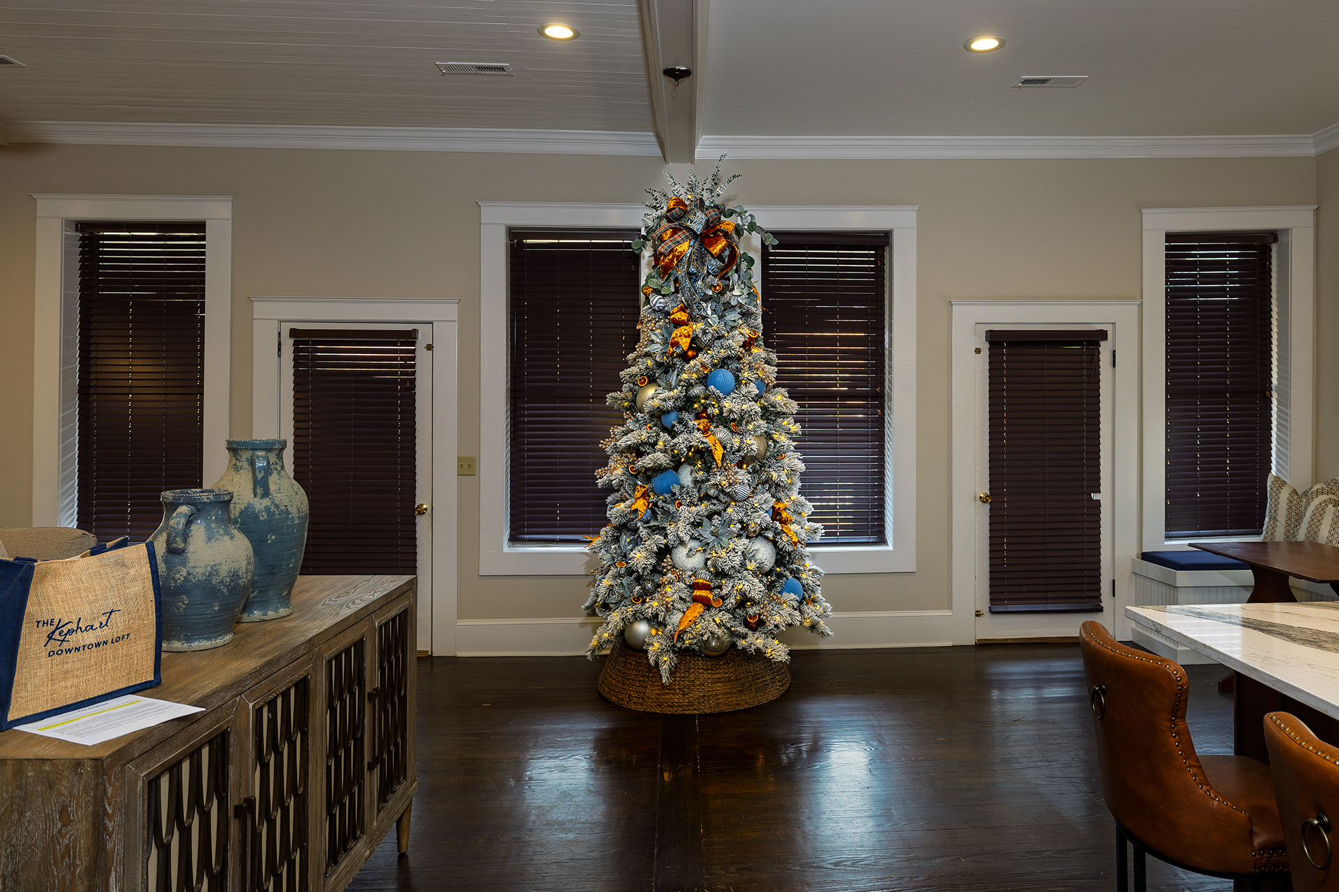 A short set of stairs will lead you up from the courtyard to the entry way of The Kephart. This loft is a single level property that sits on the second level of the building above the popular Everett Street shops below. Walking through the door you are warmly welcomed into this chic and sophisticated downtown loft. There are seven bedrooms and two bathrooms in total. The bedrooms are found along the parameter of this property with varying bed sizes: 6 king size beds, and one with two full size beds. There is a large living room and kitchen that sit central to this property with lots of beautiful windows that display views of downtown. There is one master suit with a king size bed and private bath in this loft. Sit back and watch the large flat screen tv that hangs in the living room, or grab a book and curl up in one of the reading nooks. You are sure to find everything you want and more when you visit The Kephart.